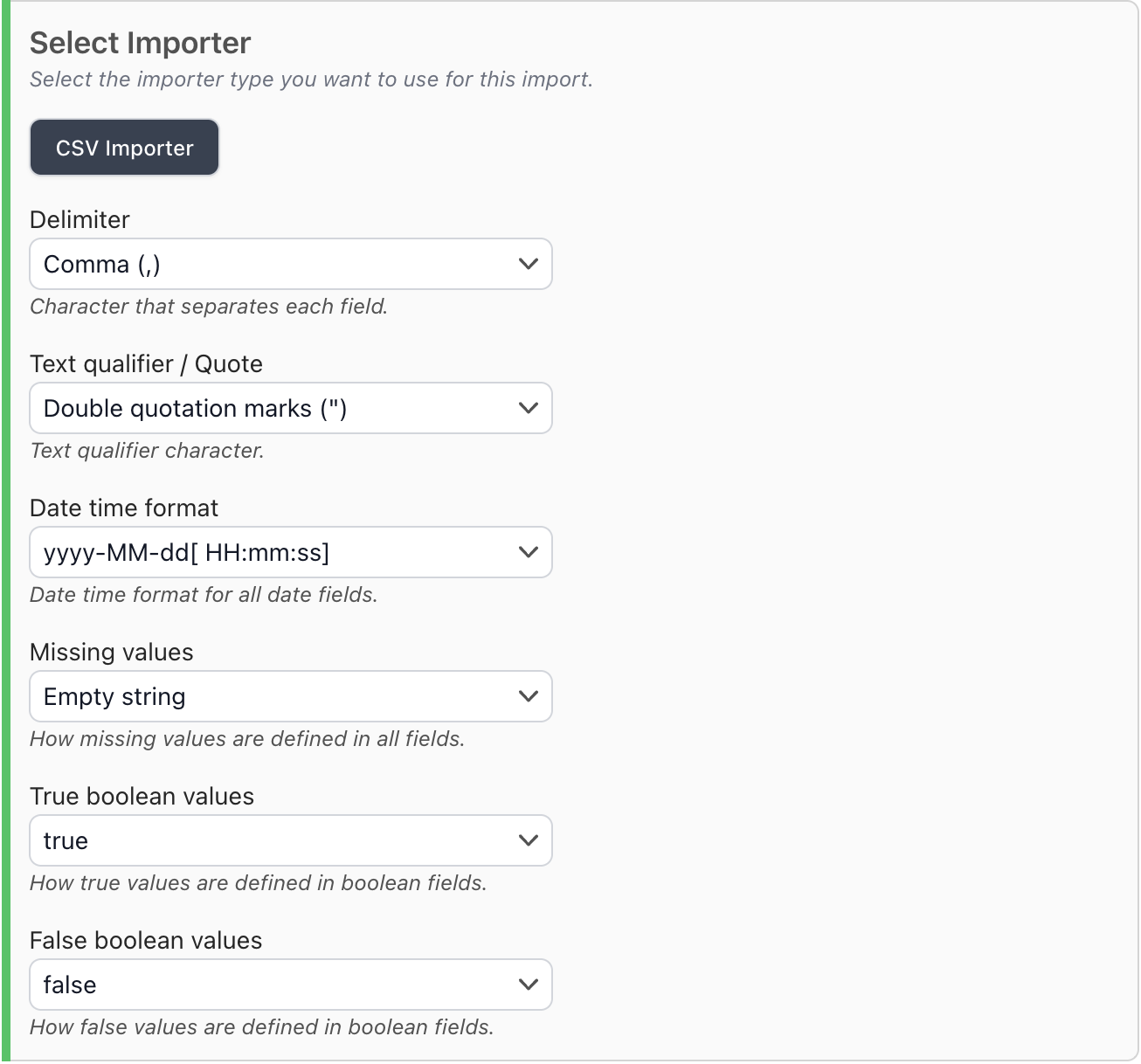Configure the CSV importer